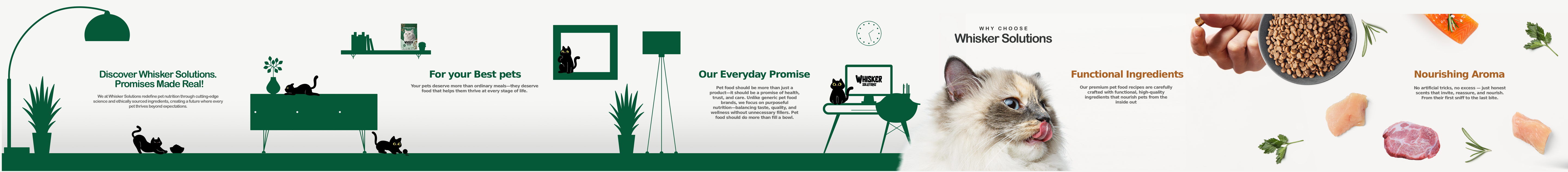 Complete pet food, like Whisker Solutions dry cat food, contains all the vitamins and minerals your feline friend needs to stay healthy and happy. You can simply serve it on its own, along with a bowl of fresh water.